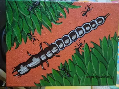 Nature has always intrigued me, and I am fascinated by the small seldom seen worlds I find. After planting a Native pollinator garden, I was amazed at all of the flowers, colors and the insects that came to live there. This inspired me to return to painting after many years to do a series of bugs. I also like doing landscapes and started incorporating bugs into them as well. Memories and experiences of growing up in Mankato, also give me inspiration. I even finished some old paintings I had started, one of which was from 1981!