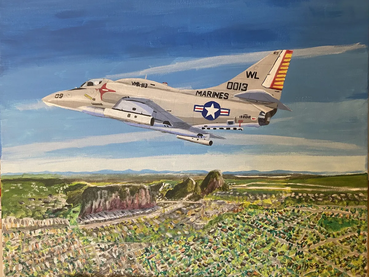 Marine A-4 Skyhawk over Marble Mountain, DaNang