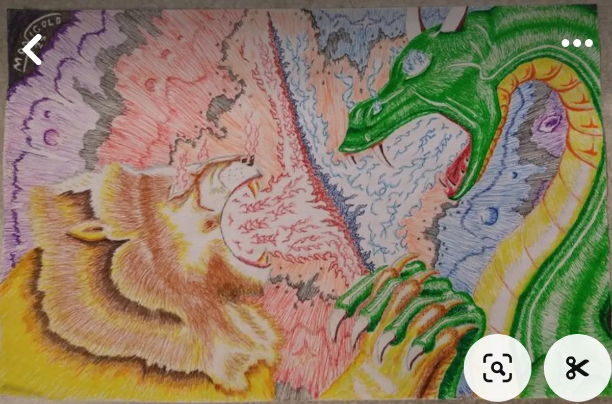 Celestial lion and dragon fighting in space