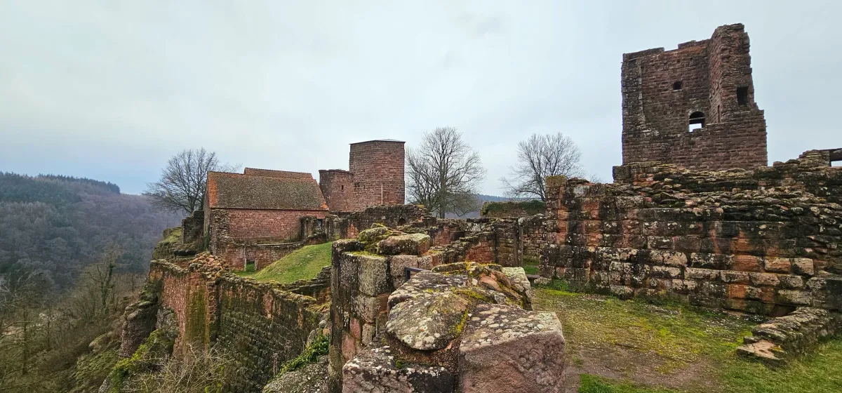 castle ruinsmedieval architecturehistorical sitestone wallsovercast landscapeforestfortressRealismDark / DramaticStorytelling / NarrativeLandscape / NatureCity / ArchitectureHistorical / Cultural