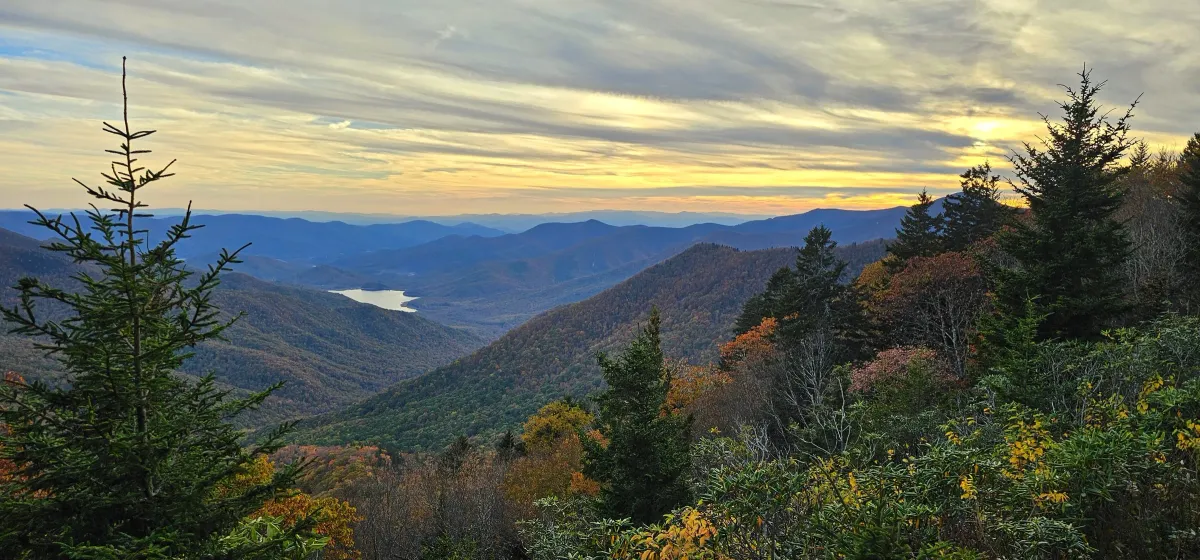 Mountain landscapeSunsetAutumn foliageLakeScenic viewNaturePanoramicRealismLight / SereneInspirational / UpliftingLandscape / NatureSeascape / Water