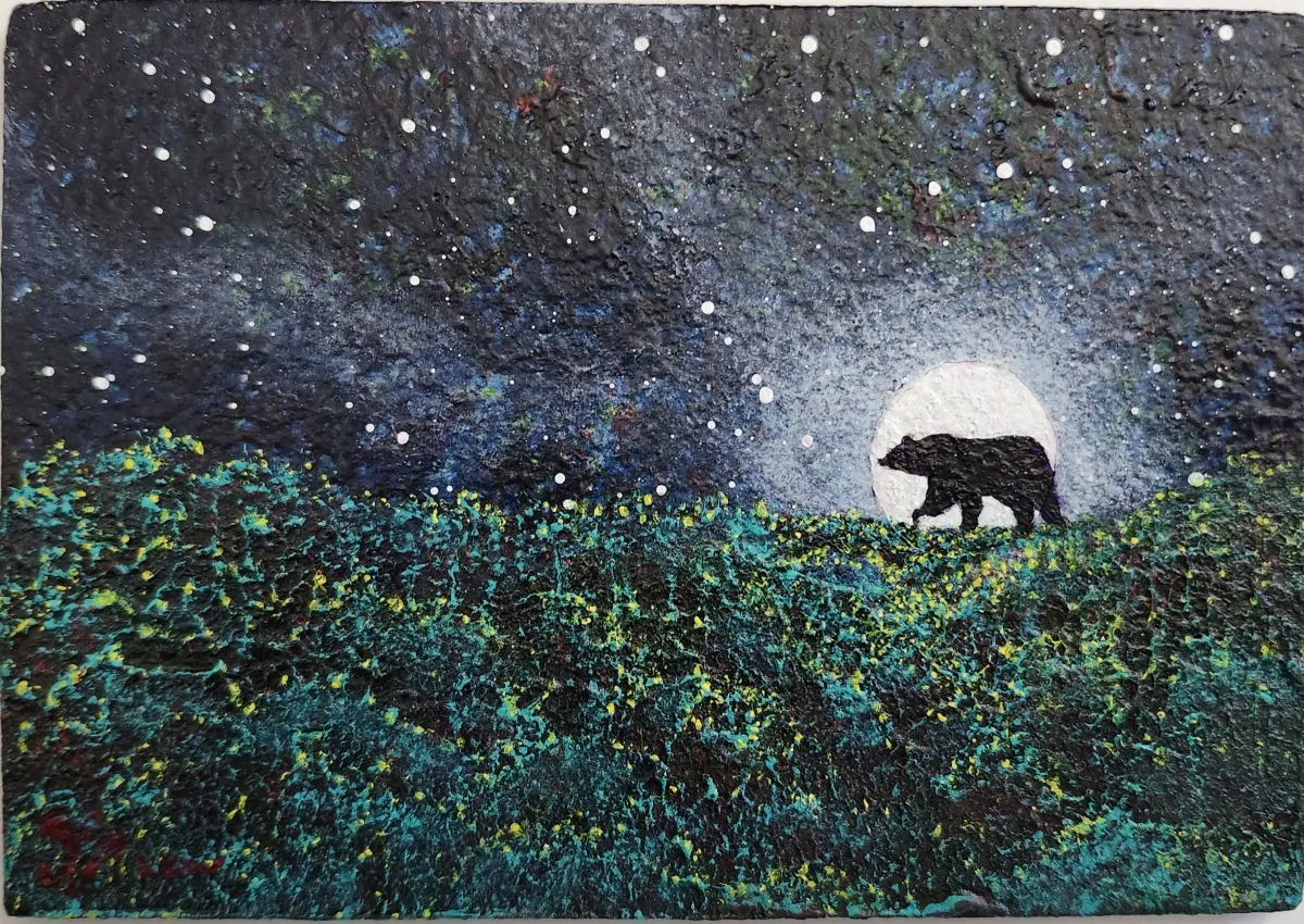 bearnightmoonstarslandscapetexturedwildlifeExpressionism / EmotionalDark / DramaticStorytelling / NarrativeContemporary / ModernLandscape / NatureAnimals / WildlifeSpiritual / Symbolic