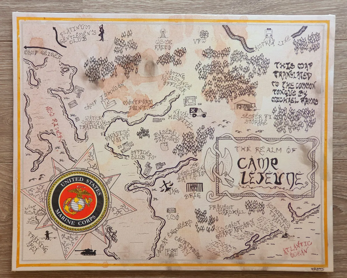Lord of the Rings/Hobbit-style map of USMC Base Camp Lejeune, North Carolina