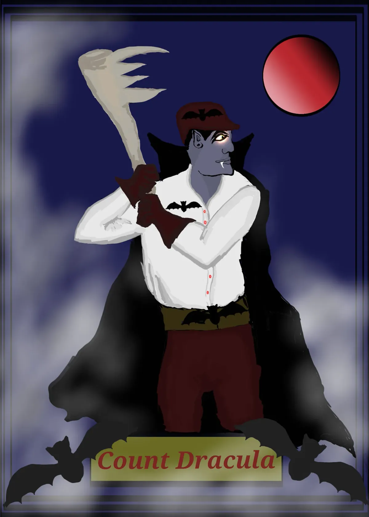 Draculavampirebaseballred moonbatsfantasygothicContemporary / ModernBold / GraphicStorytelling / NarrativePortrait / PeopleSpiritual / SymbolicSurreal / Imaginative