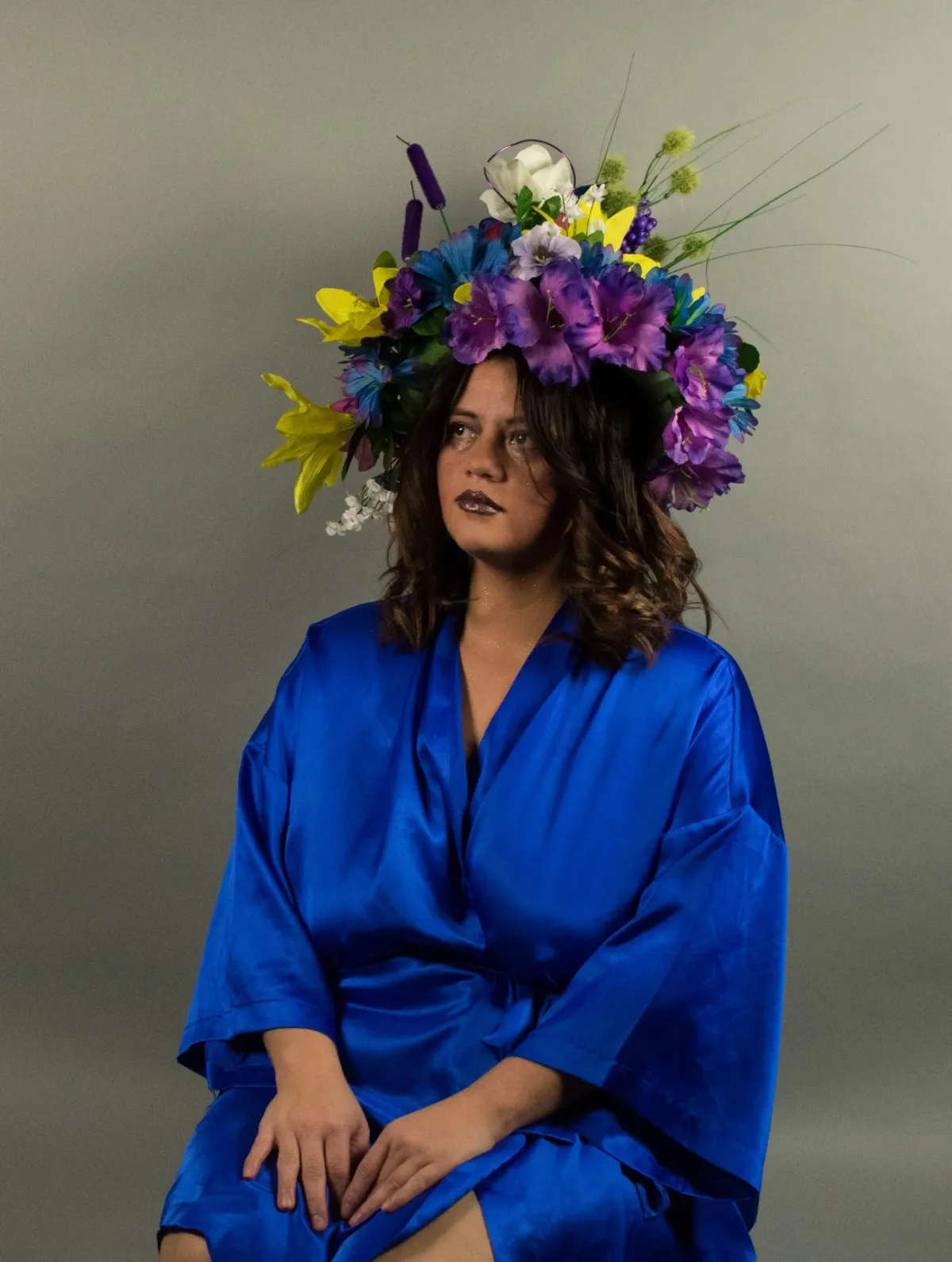 portraitwomanflower crownblue robecolorfulstudio shotfashionfloralRealismContemporary / ModernBold / GraphicExpressionism / EmotionalPortrait / PeopleSpiritual / Symbolic