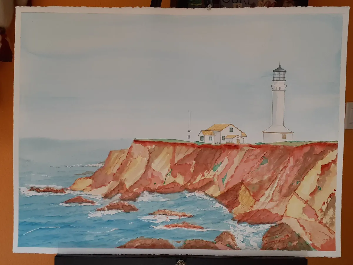 watercolorlighthousecoastal landscapecliffsoceanseascapenauticalRealismLight / SereneStorytelling / NarrativeLandscape / NatureSeascape / WaterHistorical / Cultural