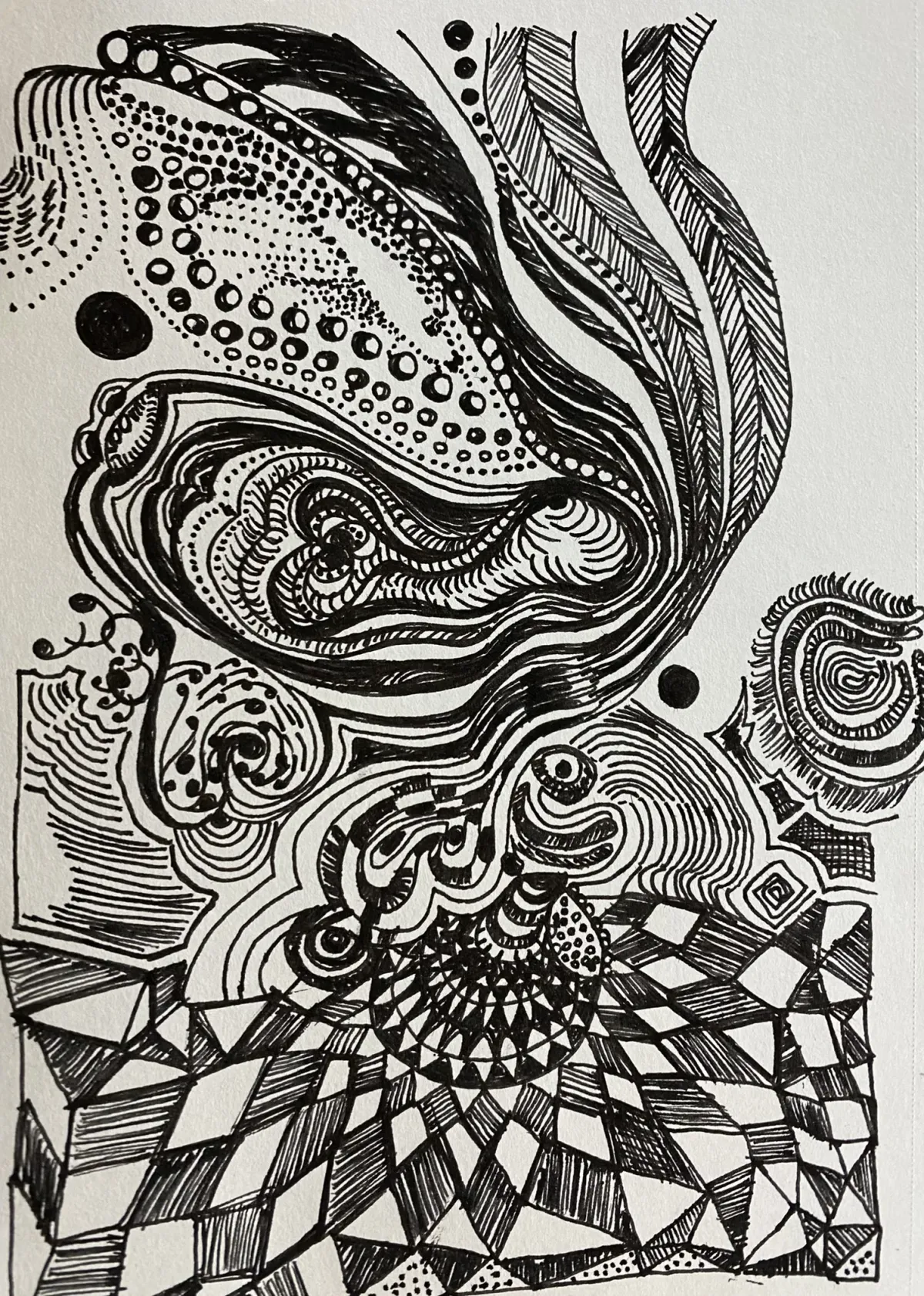 AbstractInk drawingZentanglePatternsBlack and whiteIntricateTexturedAbstractContemporary / ModernBold / GraphicTherapeutic / ReflectiveAbstract / Conceptual