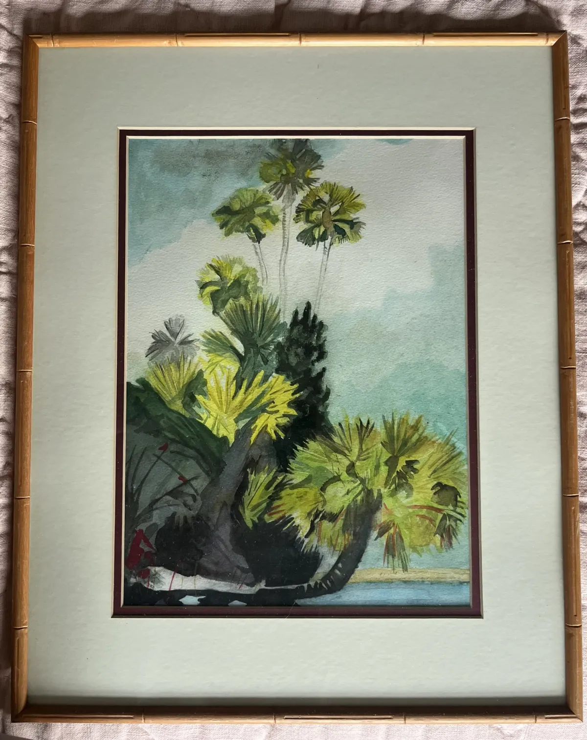 watercolorpalm treestropical landscapefoliagenaturesereneframed artworkRealismLight / SereneImpressionismLandscape / NatureSeascape / Water