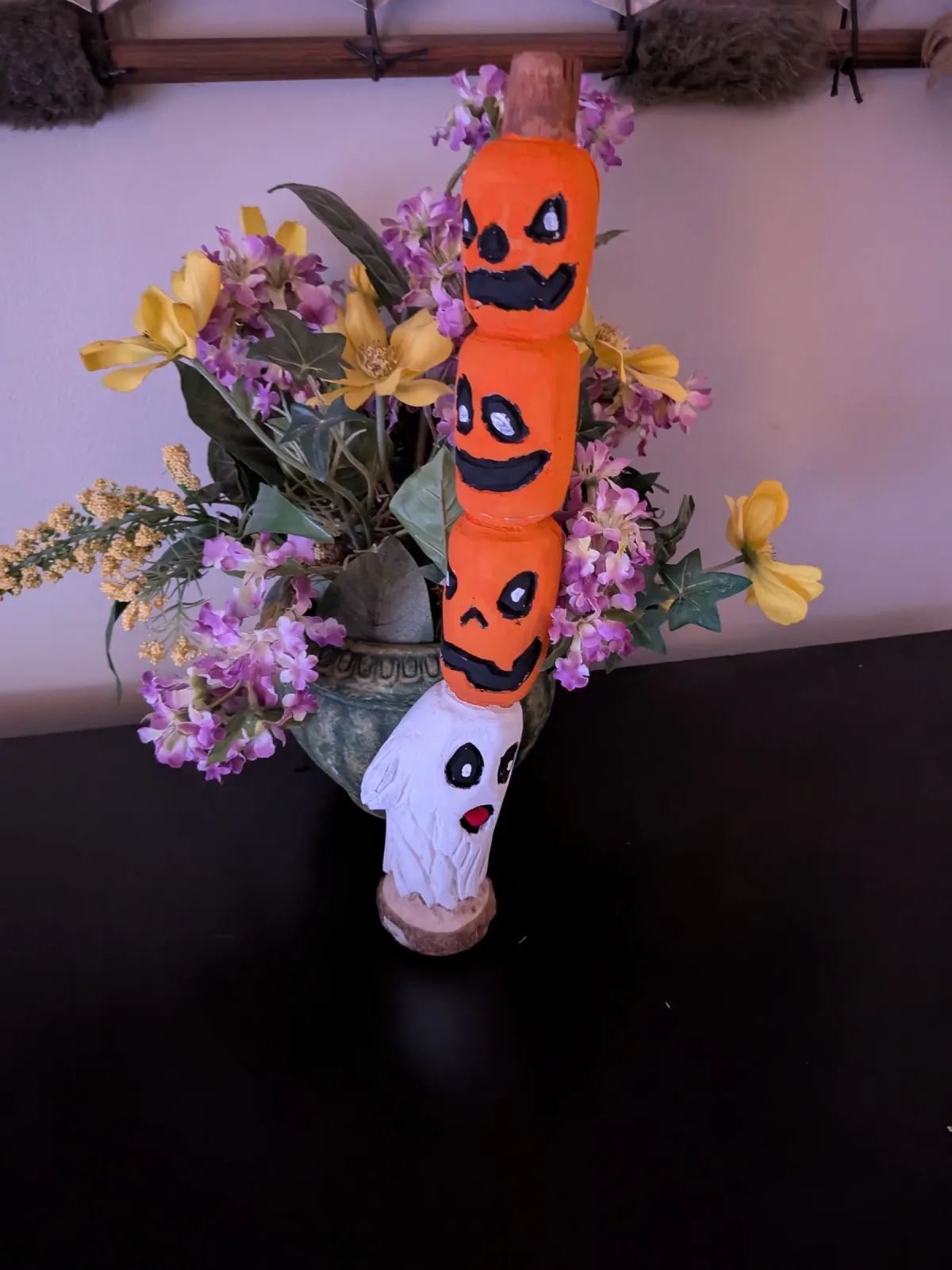 HalloweenTotem polePumpkinsGhostFestive decorFloral arrangementSpookyRealismContemporary / ModernStorytelling / NarrativeStill Life / ObjectsHistorical / Cultural