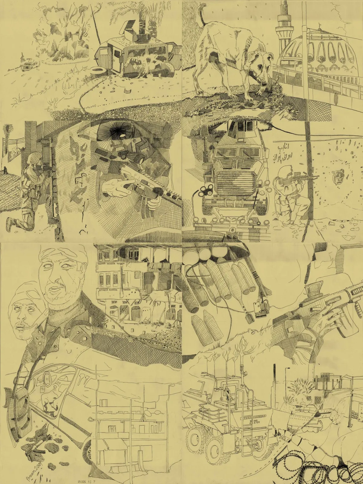 MilitaryWarSoldiersUrban warfareInk drawingCollageConflictSketchRealismStorytelling / NarrativeDark / DramaticBold / GraphicPatriotic / Military / FreedomVeteran Story / ServiceCity / ArchitectureAnimals / WildlifePortrait / PeopleConflict / SacrificeHistorical / Cultural