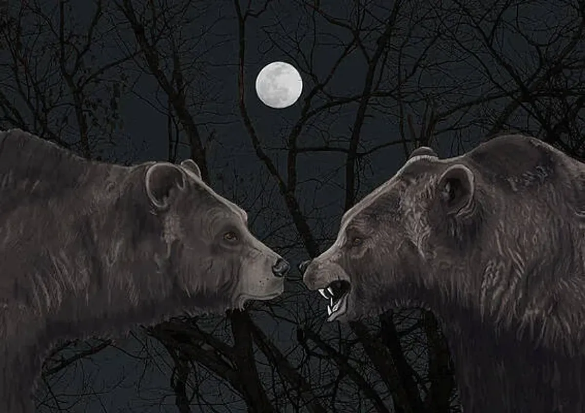 bearsfull moonnightforestwildlifeconfrontationdarkRealismDark / DramaticStorytelling / NarrativeLandscape / NatureAnimals / WildlifeConflict / Sacrifice
