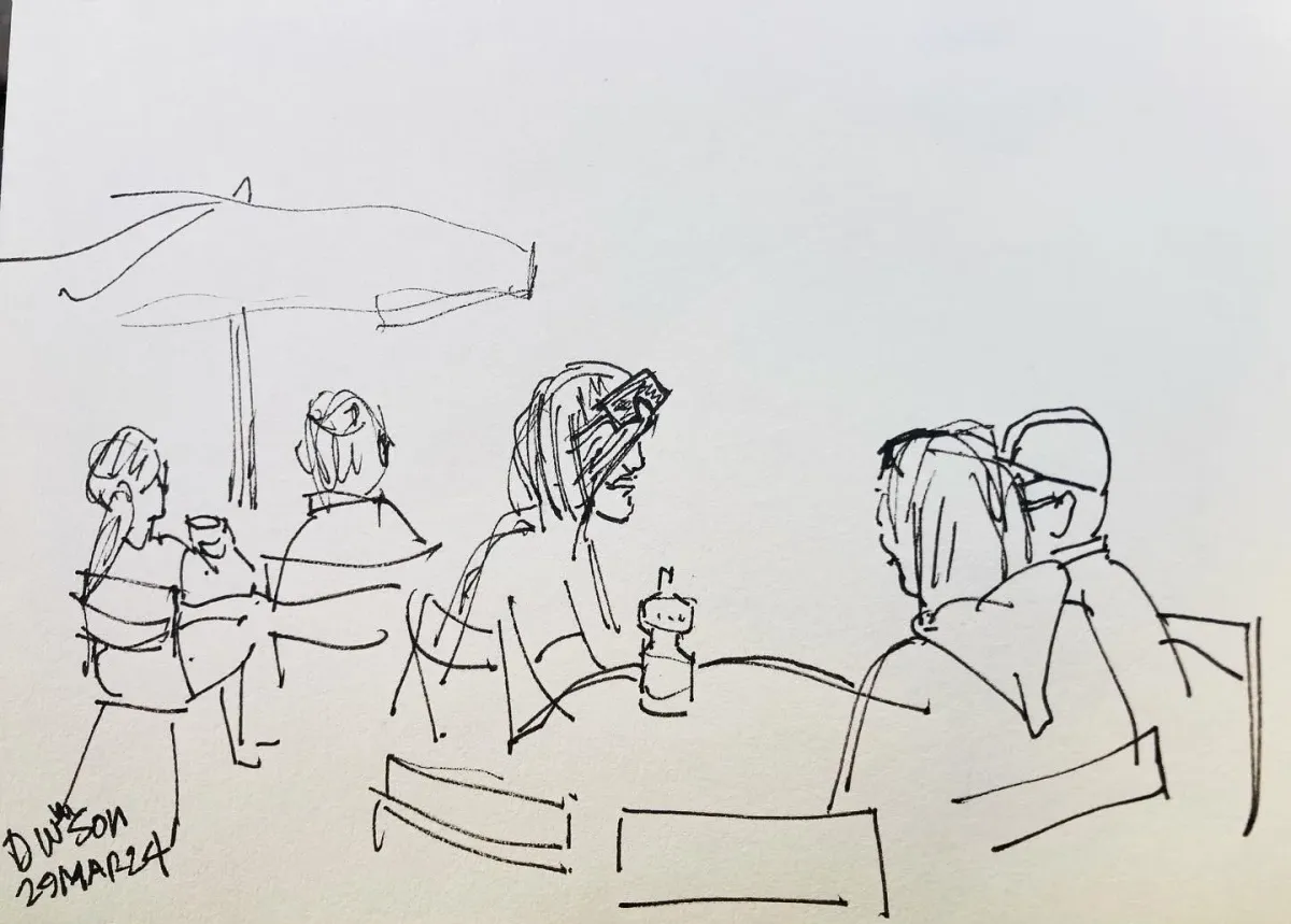 ink sketchline artpeoplecafe sceneminimalisturban sketchumbrellaRealismContemporary / ModernMinimalistBold / GraphicStorytelling / NarrativePortrait / PeopleHistorical / Cultural