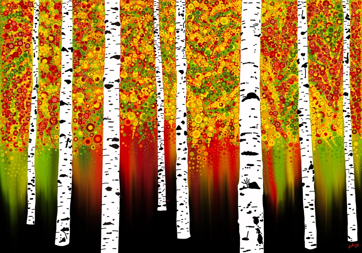 birch treesautumnfall foliagepointillismforestabstractcolorfulAbstractBold / GraphicContemporary / ModernInspirational / UpliftingLandscape / NatureAbstract / Conceptual