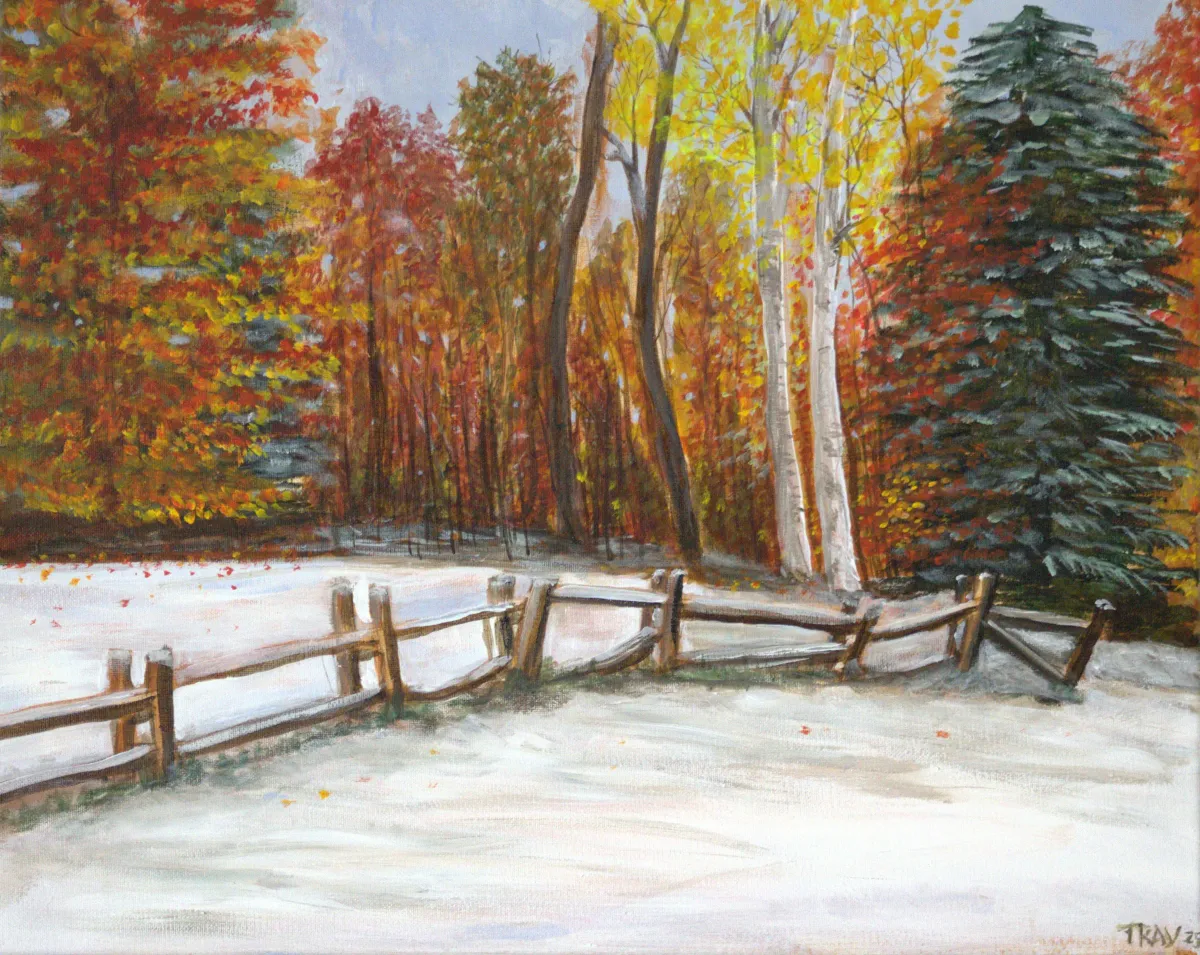 autumnwinterforestsnowwooden fencelandscapeseasonal changeRealismLight / SereneLandscape / Nature