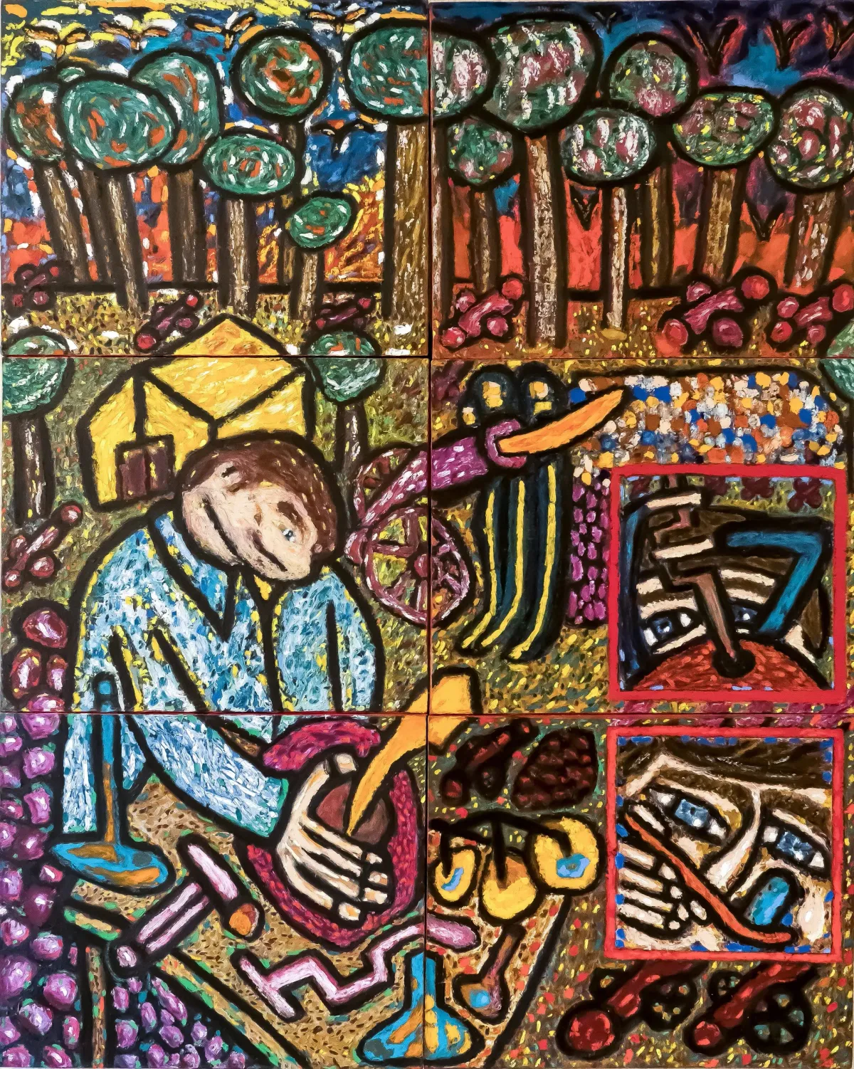 expressionisticvibrantmulti-panelmusicianabstractnarrativefolk artExpressionism / EmotionalBold / GraphicContemporary / ModernStorytelling / NarrativePortrait / PeopleLandscape / NatureAbstract / ConceptualStorytelling / Narrative