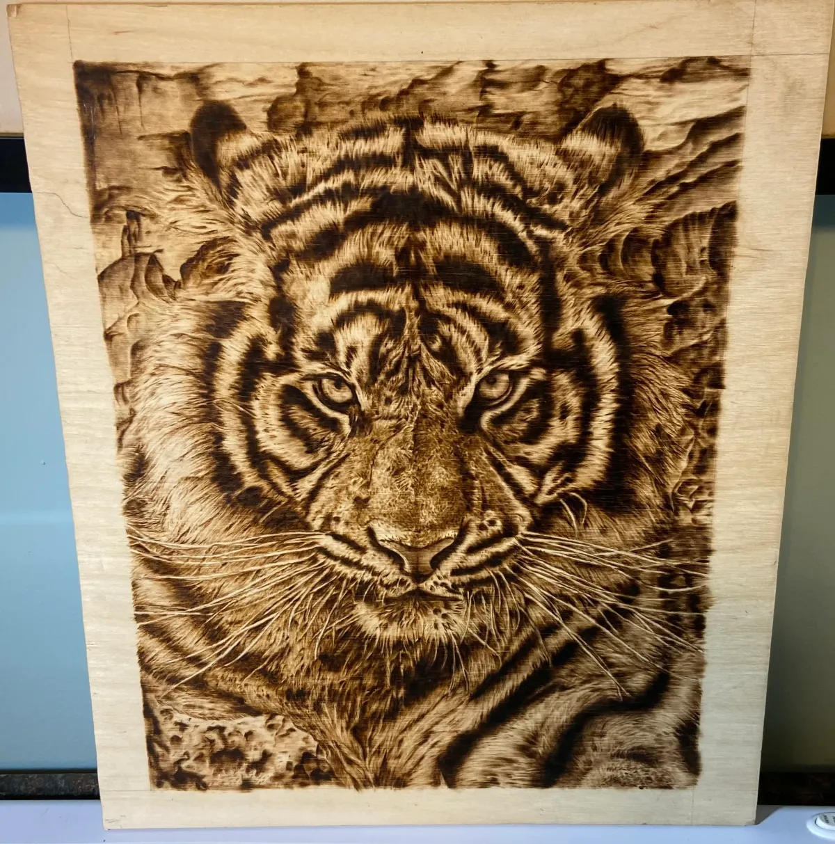 pyrographywood burningtigerwildlifeanimal artrealisticdetailedRealismDark / DramaticBold / GraphicAnimals / WildlifePortrait / People