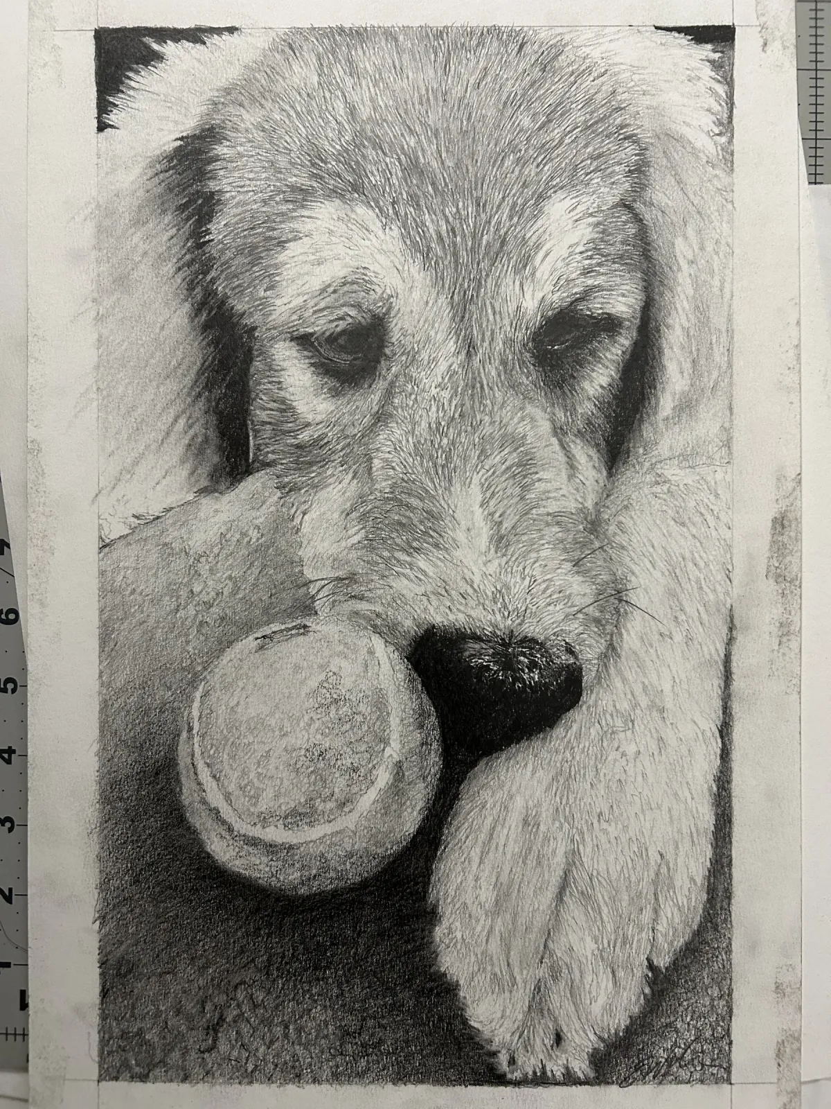 dogpuppypencil drawingrealismanimal portraittennis ballmonochromeRealismStorytelling / NarrativeTherapeutic / ReflectiveAnimals / Wildlife