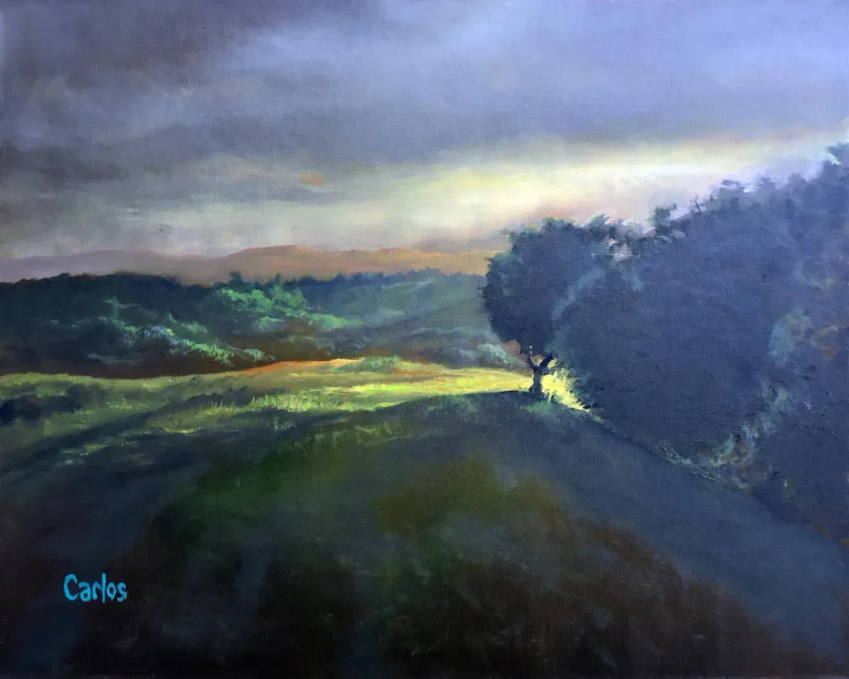 landscapeoil paintingdramatic lighttreehillssunsetmoody skyRealismExpressionism / EmotionalDark / DramaticInspirational / UpliftingLandscape / NatureSpiritual / SymbolicHope / Healing / Resilience