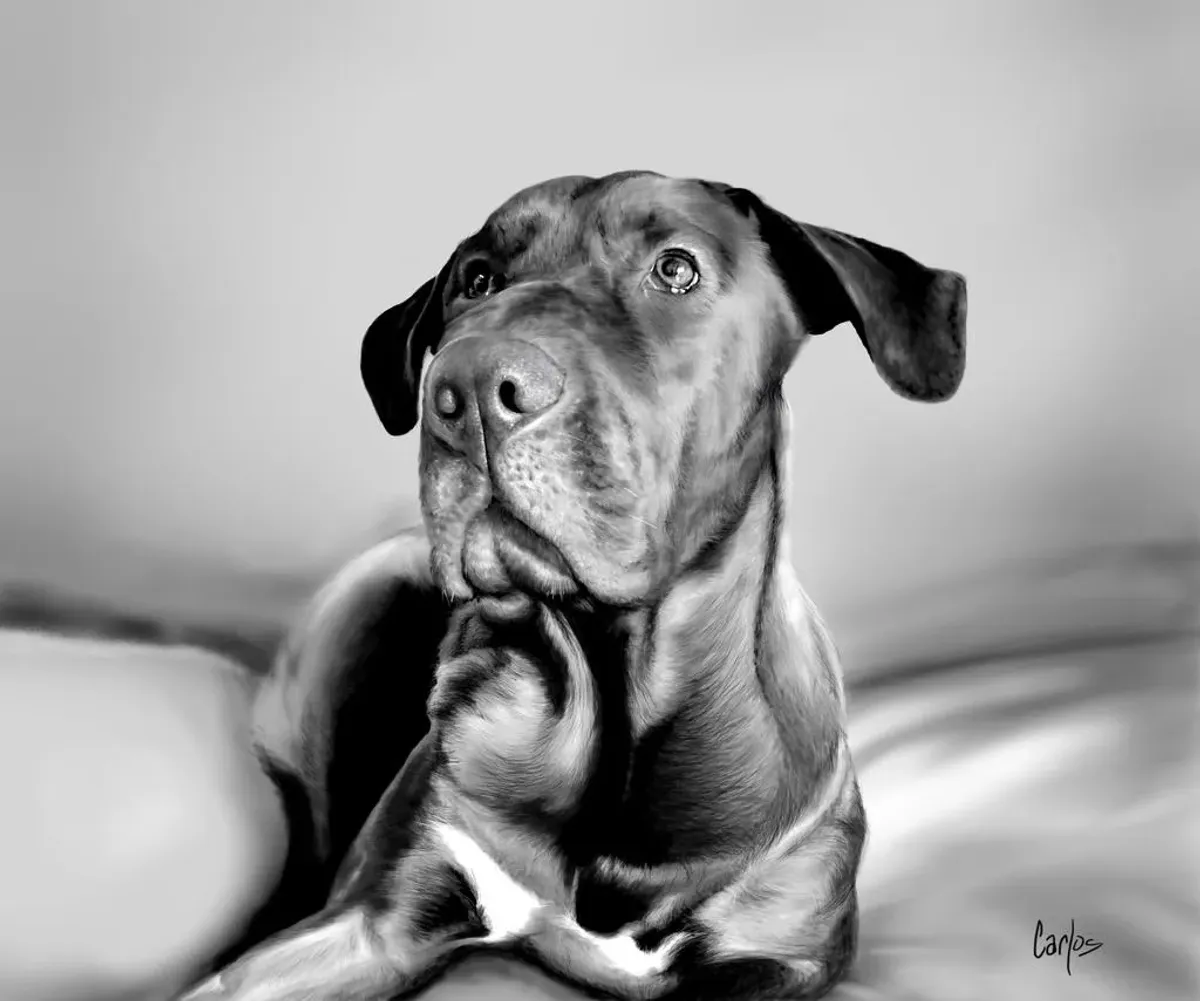 dogcanineblack and whiterealismanimal portraitpet artdigital artRealismLight / SereneStorytelling / NarrativeAnimals / WildlifePortrait / People