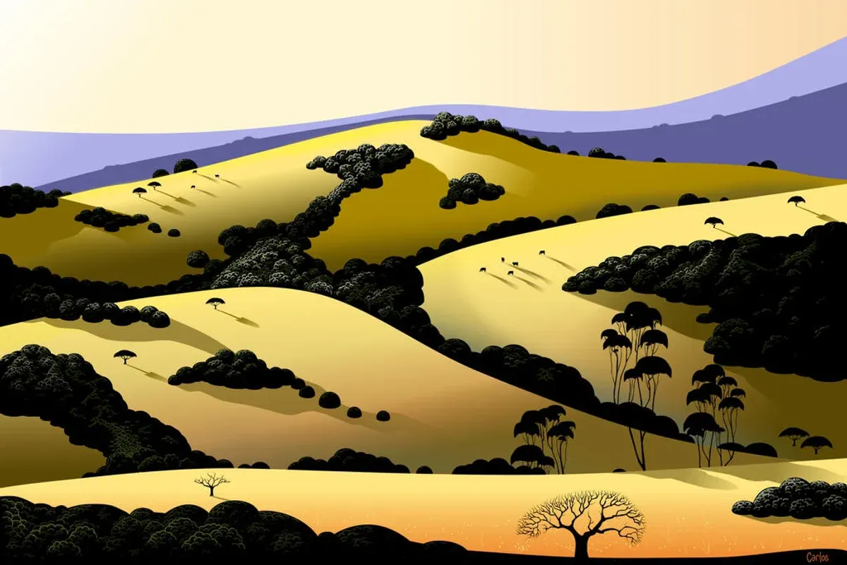 landscapestylizedhillstreesshadowssunsetnatureContemporary / ModernBold / GraphicLight / SereneLandscape / Nature