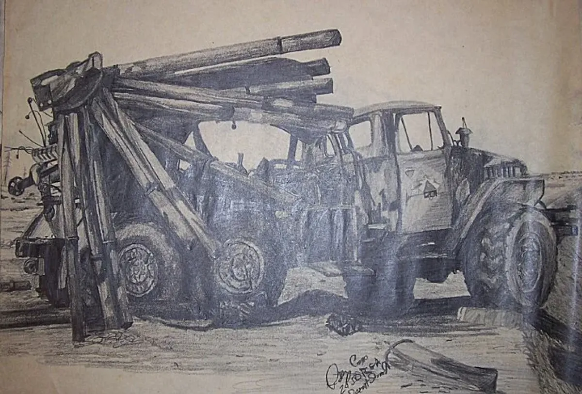 Pencil sketchheavy truckmilitary vehicleindustrialabandonedmonochromerealismwartime relicRealismDark / DramaticStorytelling / NarrativePatriotic / Military / FreedomHistorical / CulturalConflict / Sacrifice