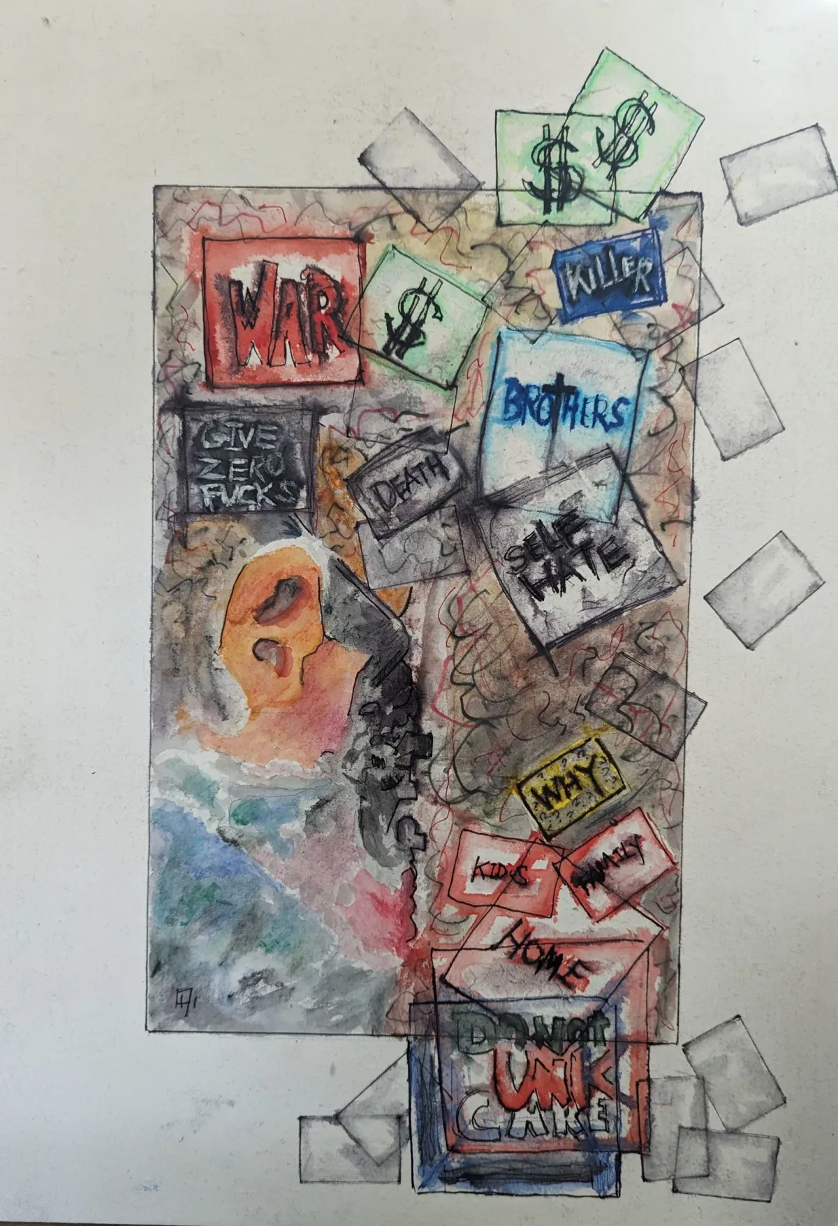 AbstractConflictEmotionalSymbolicMixed mediaWarSelf-hateAbstractExpressionism / EmotionalContemporary / ModernBold / GraphicDark / DramaticStatement / ActivismPatriotic / Military / FreedomSpiritual / SymbolicHistorical / CulturalConflict / Sacrifice