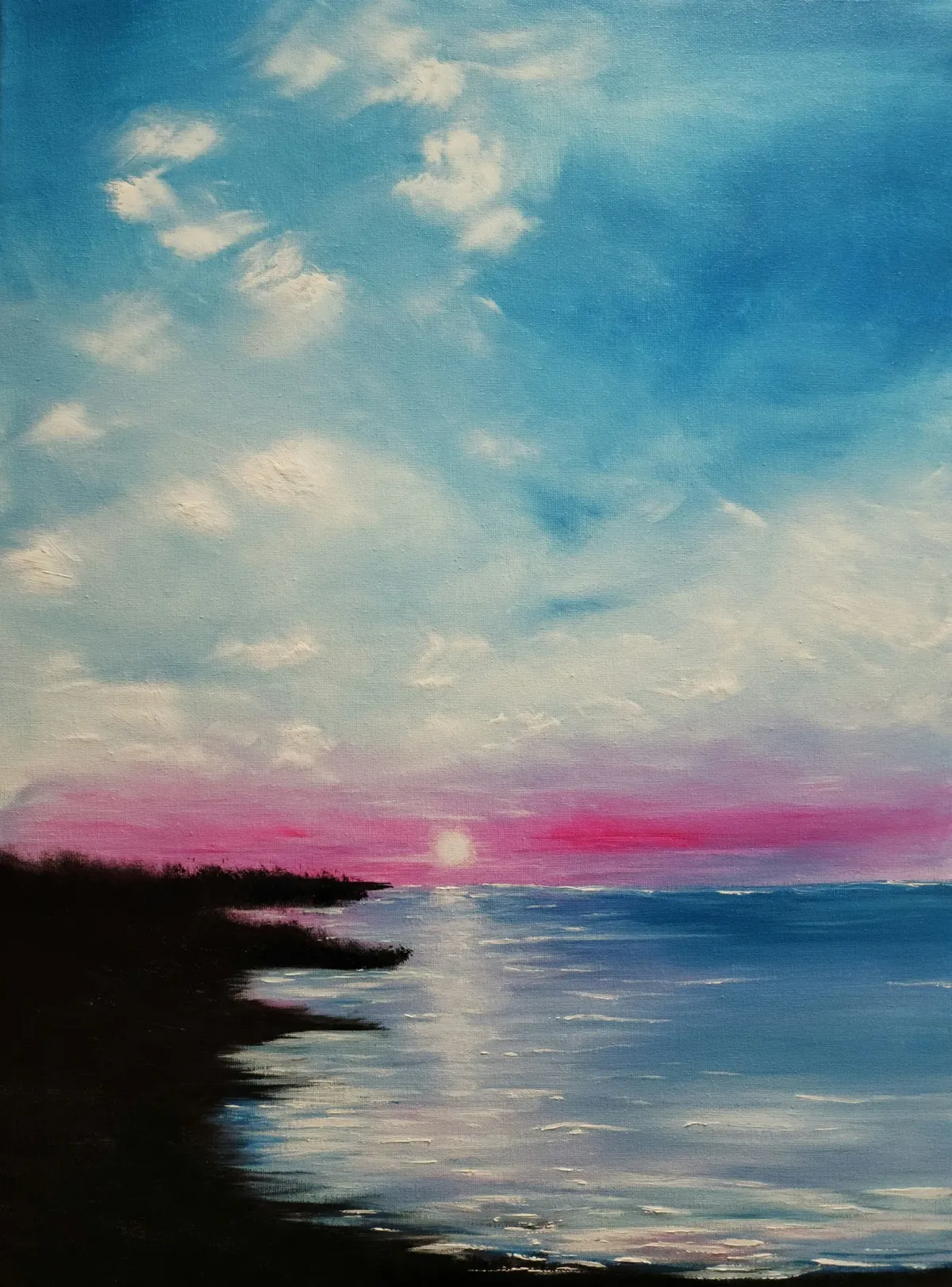 SunsetSeascapePaintingHorizonVibrant ColorsOceanLandscapeRealismImpressionismLight / SereneTherapeutic / ReflectiveInspirational / UpliftingLandscape / NatureSeascape / WaterSpiritual / SymbolicHope / Healing / Resilience