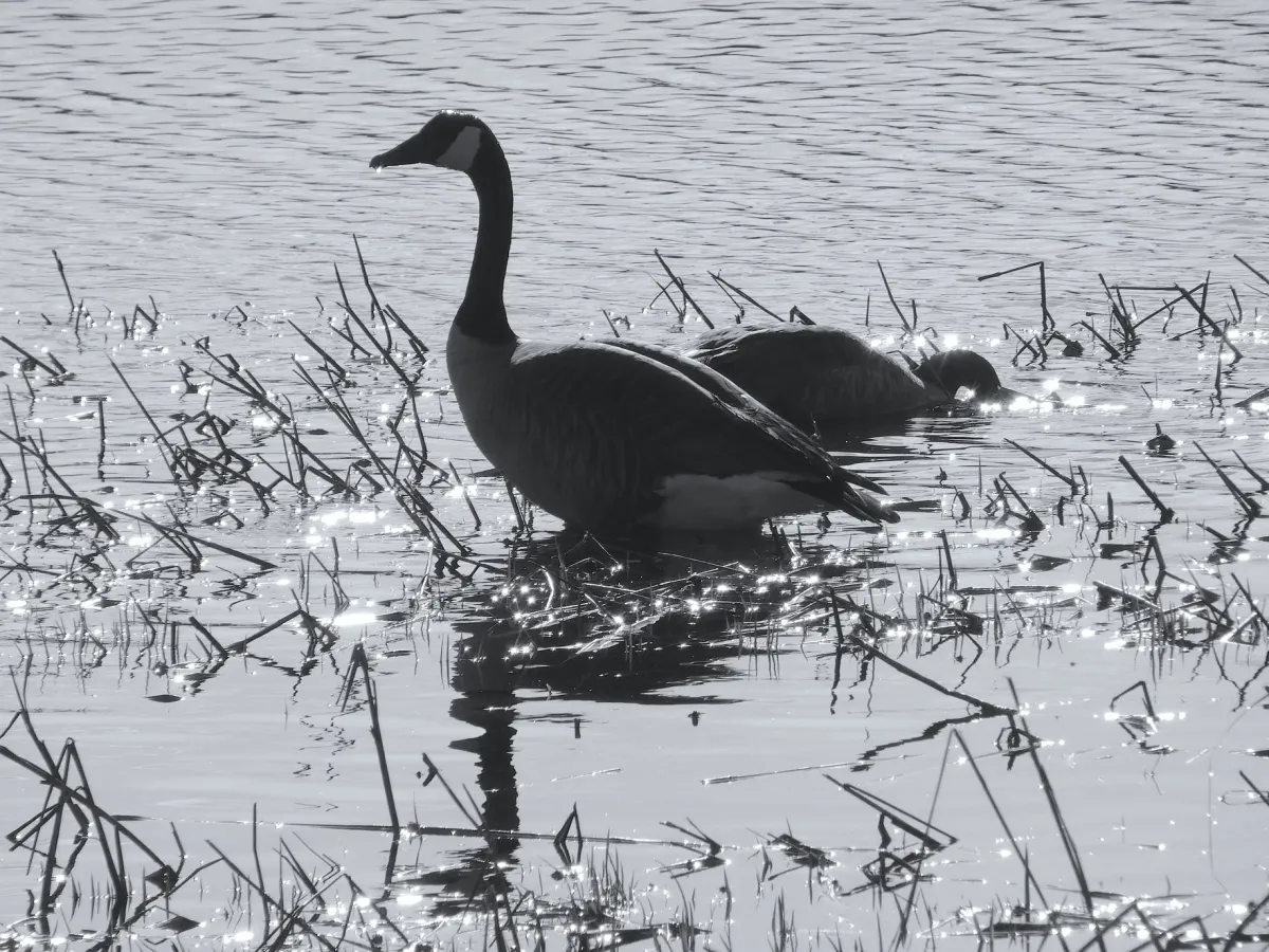 geesewaterreedsblack and whitewildlifenaturesunlightRealismLight / SereneLandscape / NatureSeascape / WaterAnimals / Wildlife