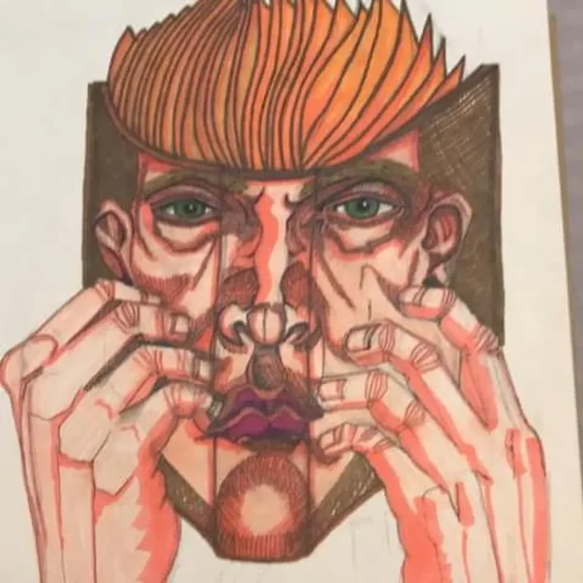 Abstract PortraitStylizedCubismOrange HairGreen EyesGeometricExpressionisticAbstractExpressionism / EmotionalBold / GraphicContemporary / ModernPortrait / PeopleAbstract / Conceptual
