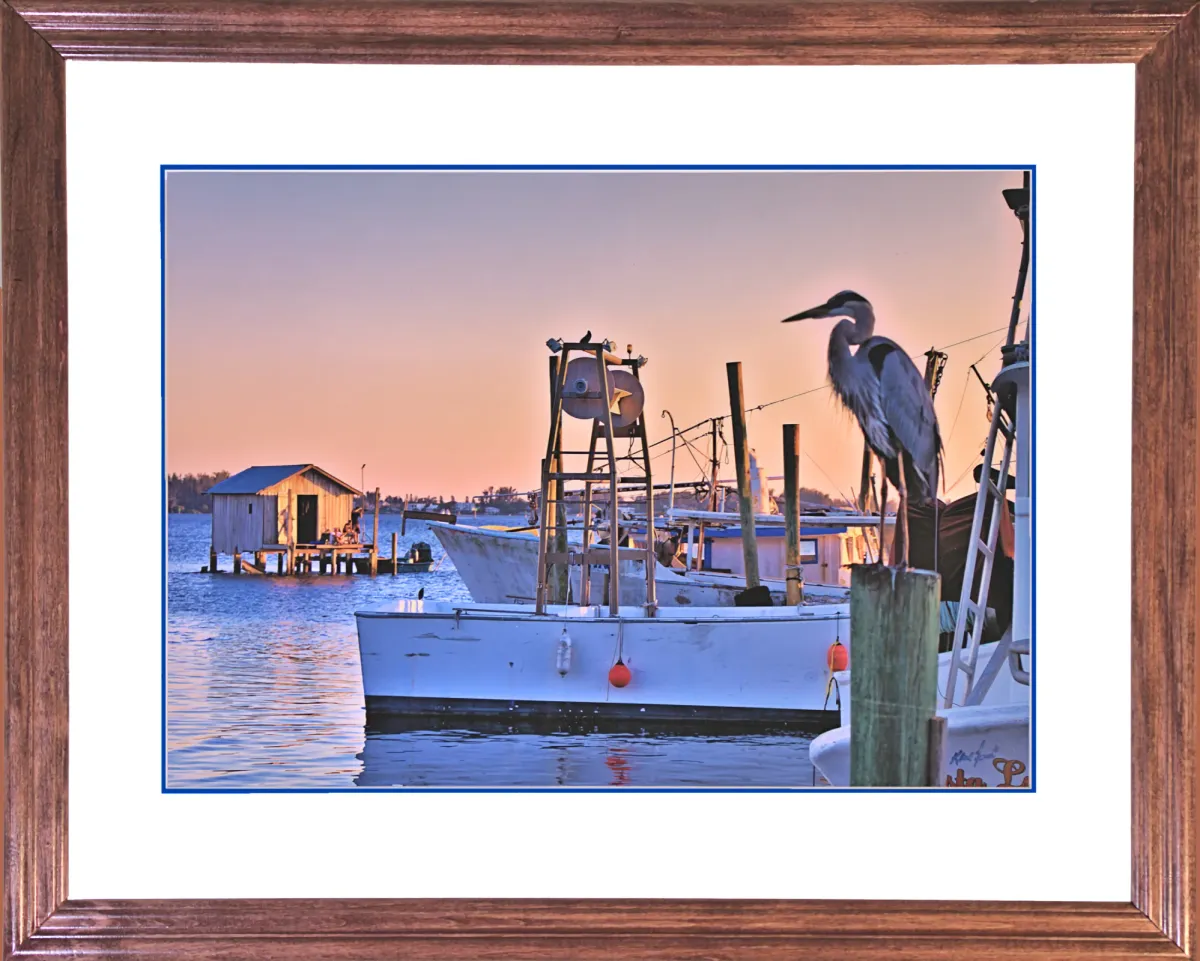 heronfishing boatssunsetsunrisecoastalstilt houseseascapeRealismLight / SereneStorytelling / NarrativeLandscape / NatureSeascape / WaterAnimals / WildlifeHistorical / Cultural