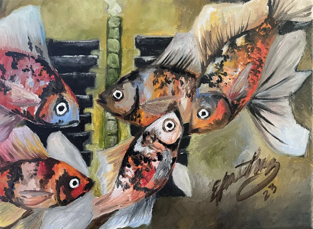 goldfishaquatic lifefishoil paintingvibrant colorsanimal artexpressiveRealismExpressionism / EmotionalStorytelling / NarrativeAnimals / WildlifeSeascape / Water