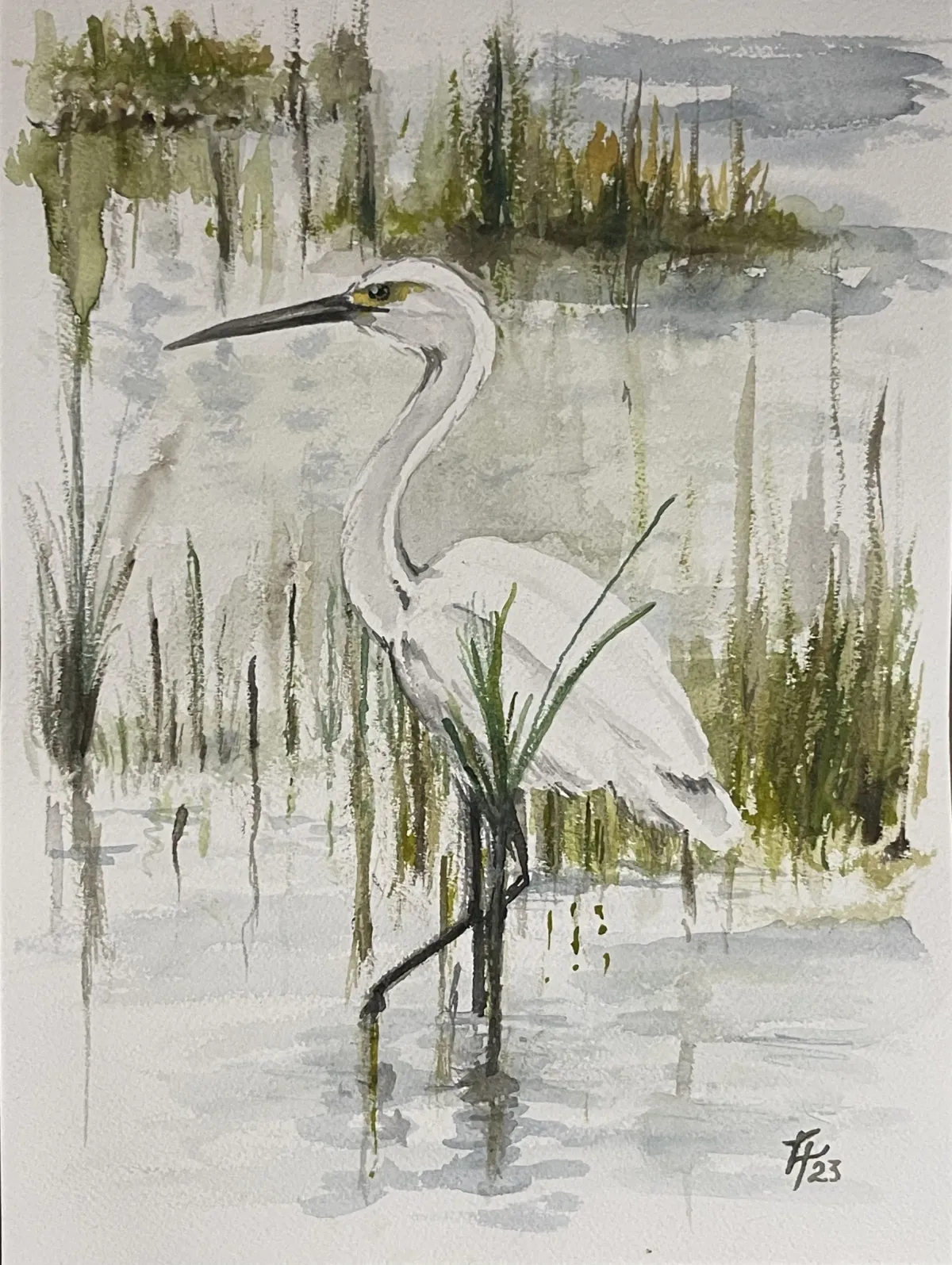 EgretwatercolormarshbirdnaturewetlandwildlifeRealismImpressionismLight / SereneLandscape / NatureAnimals / WildlifeSeascape / Water