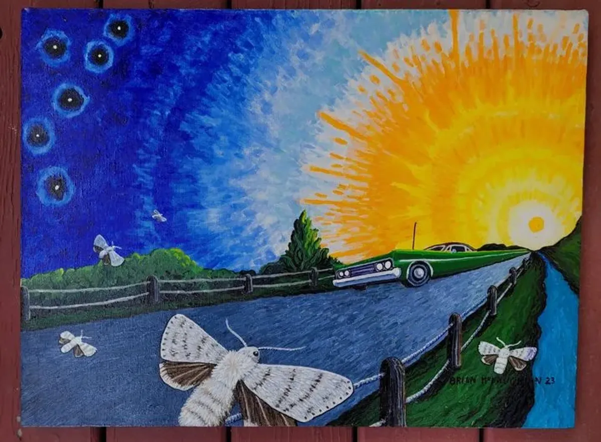 SurrealismDay and NightMothsClassic CarLandscapeContrastRoadExpressionism / EmotionalBold / GraphicStorytelling / NarrativeLandscape / NatureAnimals / WildlifeSurreal / ImaginativeStorytelling / Narrative
