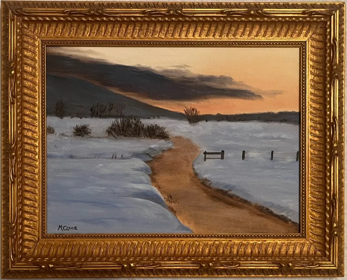 winter landscapesnowy pathsunsetcountrysideoil paintingnaturesereneRealismLight / SereneStorytelling / NarrativeLandscape / Nature