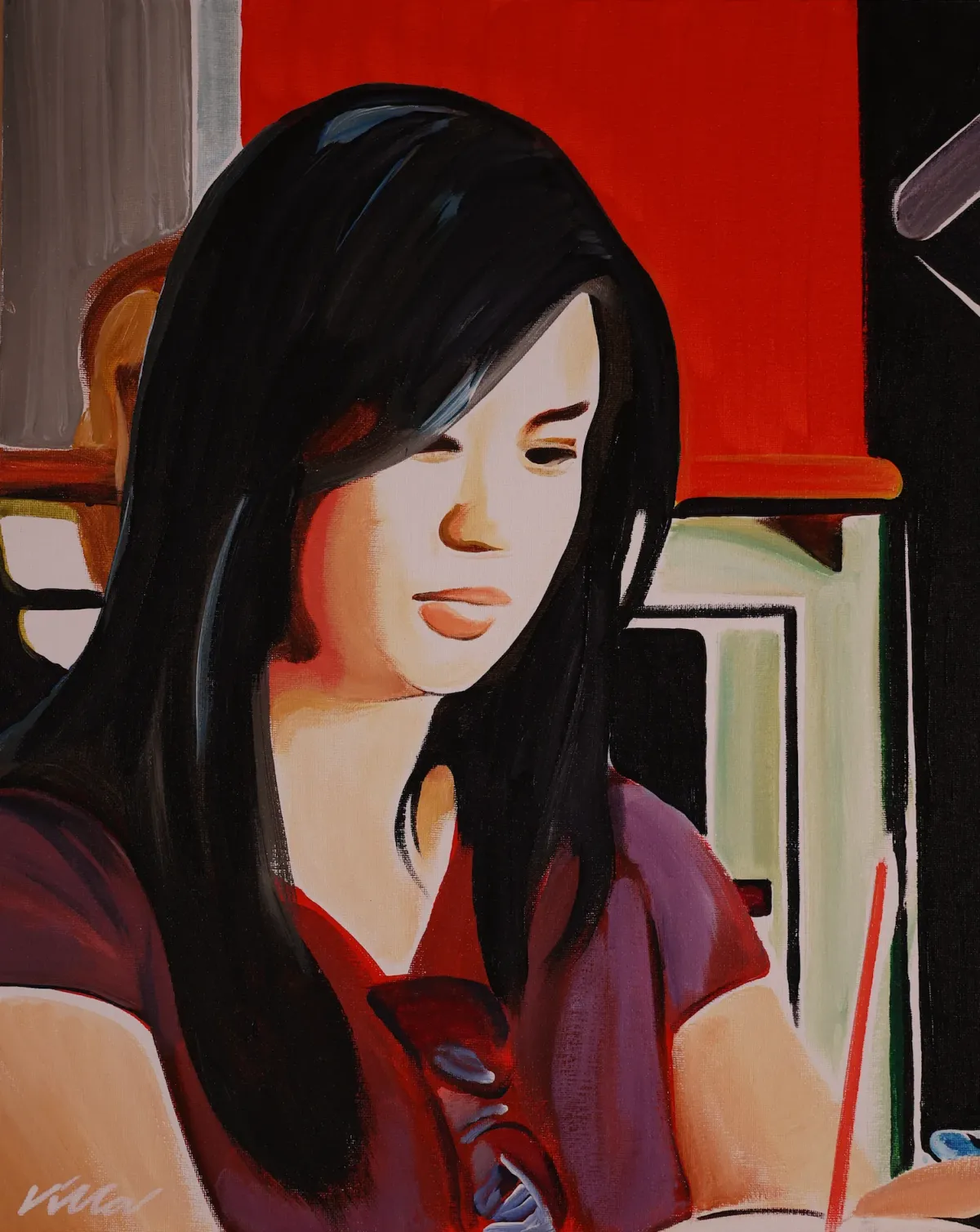 paintingportraitwomandark hairstylizedvibrantcontemporaryRealismContemporary / ModernBold / GraphicPortrait / PeopleAbstract / Conceptual