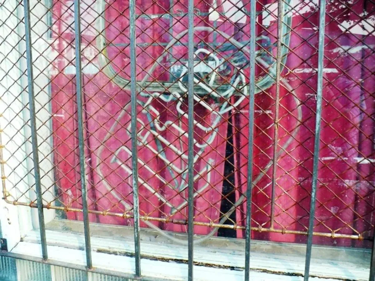 windowsecurity barsmeshcorrugated metalredrusturbanswastikagraffitiRealismDark / DramaticStorytelling / NarrativeCity / ArchitectureConflict / SacrificeHistorical / Cultural