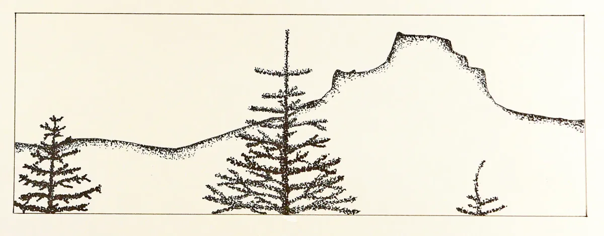stipplingmonochromelandscapepine treesmountainsnaturedrawingRealismMinimalistBold / GraphicLandscape / Nature