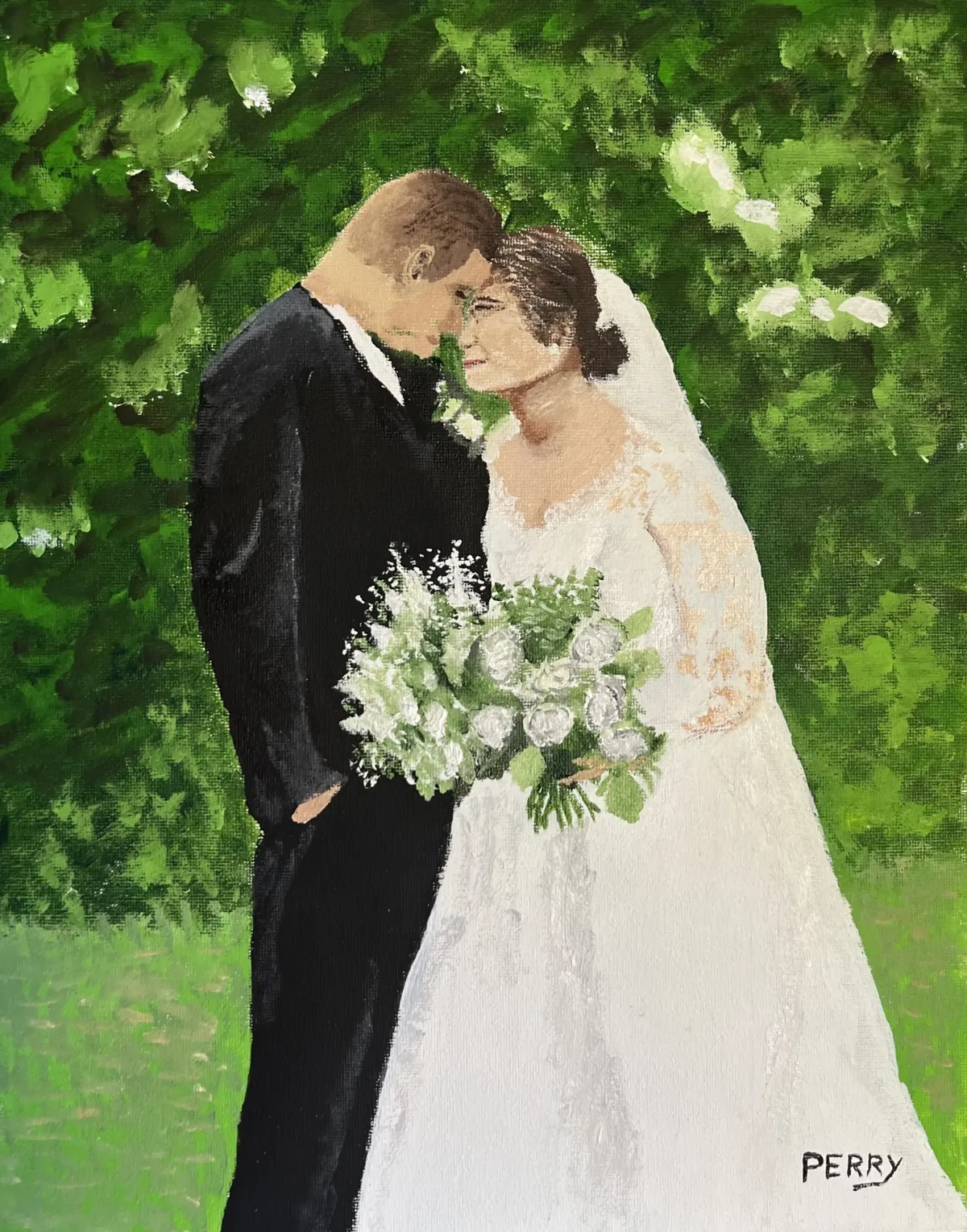 weddingcoupleportraitpaintinggreen backgroundbridegroombouquetRealismStorytelling / NarrativeExpressionism / EmotionalPortrait / PeopleHope / Healing / ResilienceHistorical / Cultural
