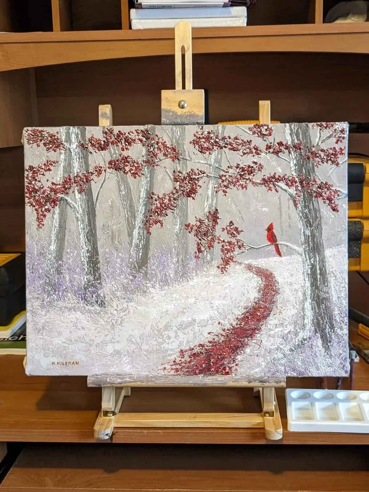 winter landscapecardinalsnowred leavesforesttexturedimpastoRealismContemporary / ModernStorytelling / NarrativeInspirational / UpliftingLandscape / NatureAnimals / Wildlife
