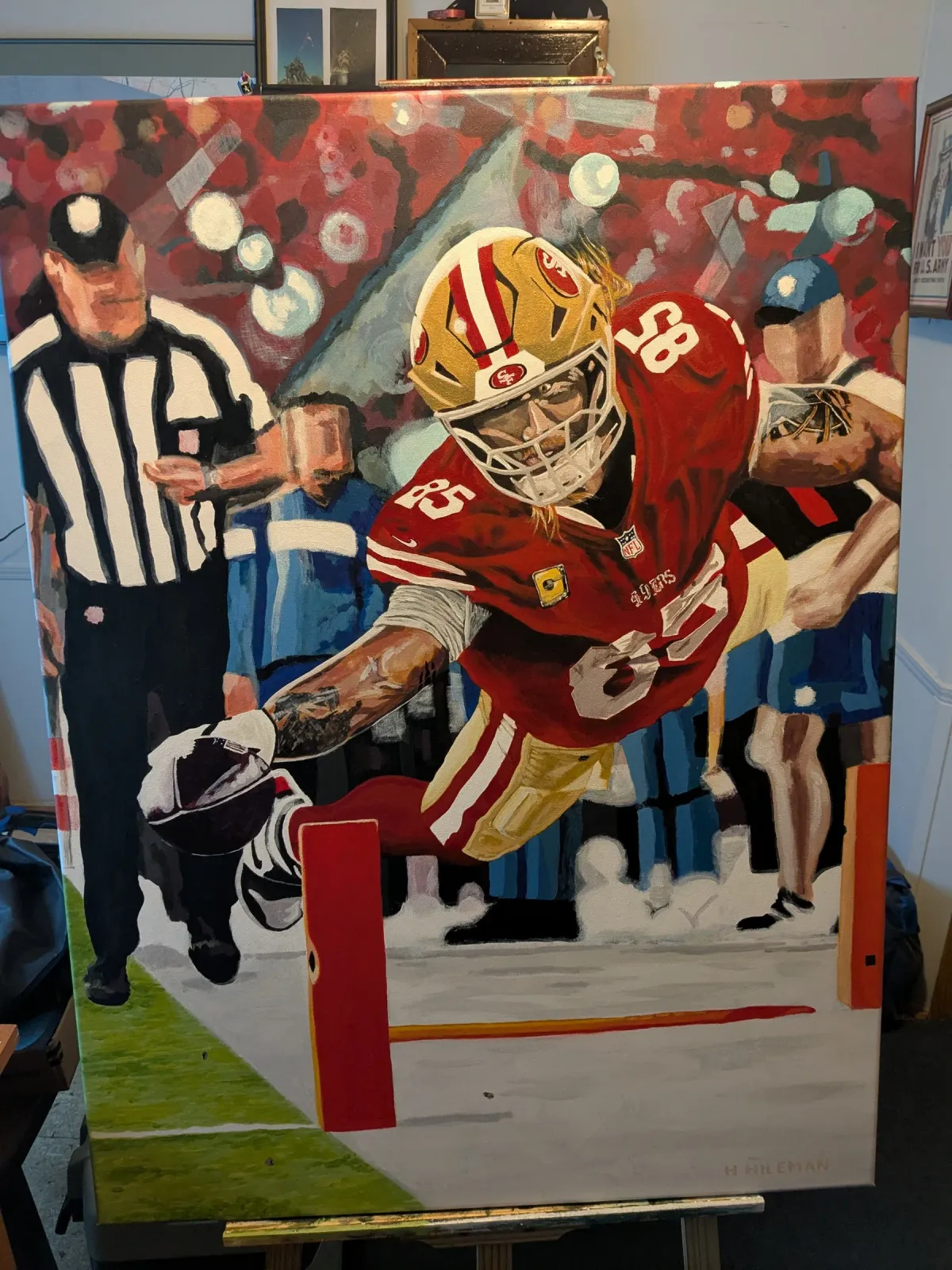 footballsportsplayeractiontouchdownrefereepaintingRealismBold / GraphicStorytelling / NarrativeExpressionism / EmotionalPortrait / PeopleConflict / SacrificeHistorical / Cultural