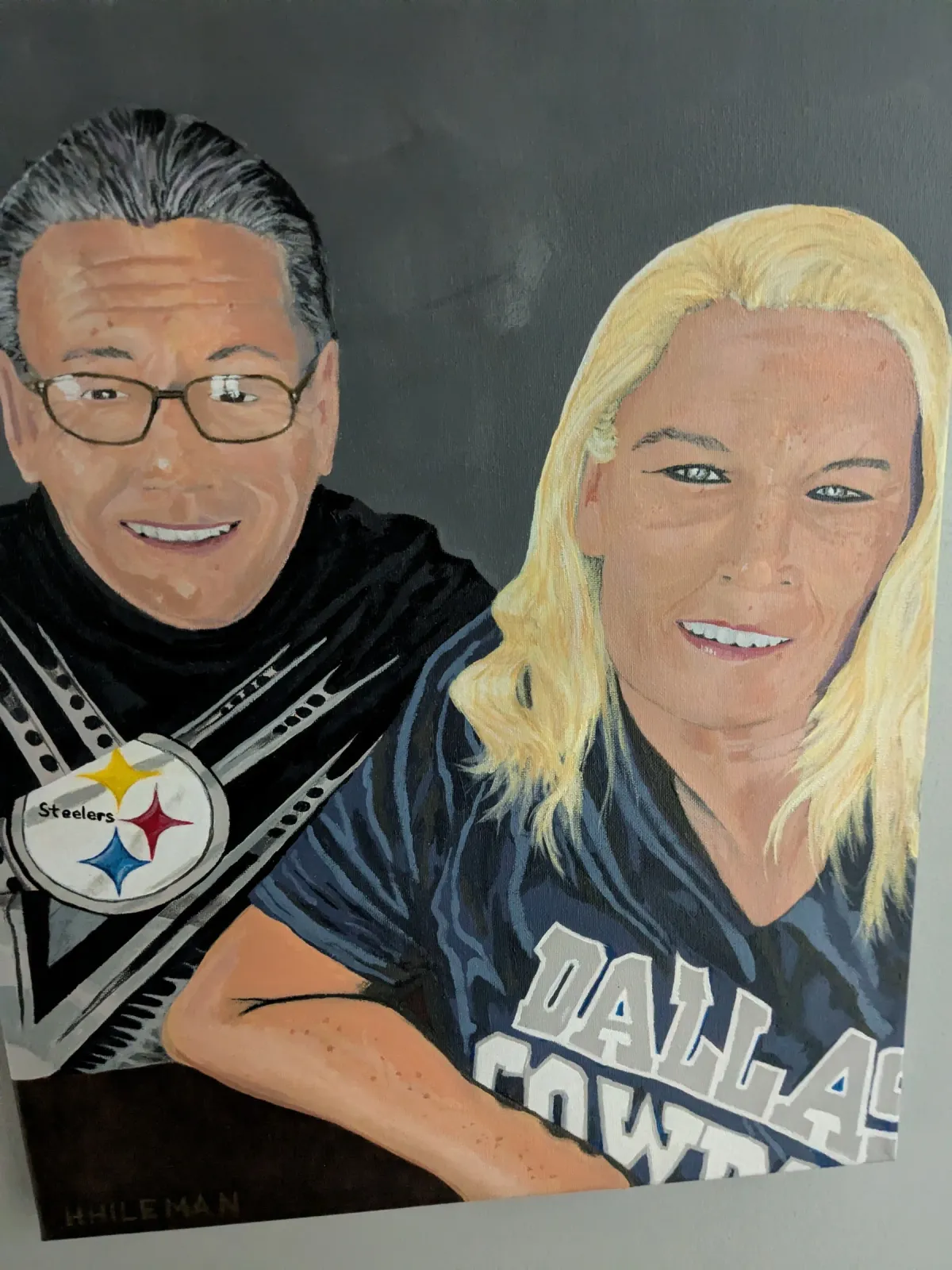 portraitcouplesports fansNFLPittsburgh SteelersDallas CowboyspaintingrealismRealismContemporary / ModernStorytelling / NarrativePortrait / PeopleHistorical / Cultural