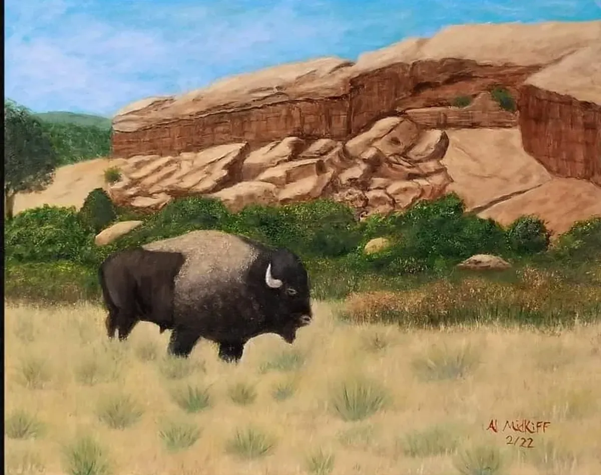 bisonlandscapewildliferock formationsgrasslandnaturepaintingRealismLight / SereneLandscape / NatureAnimals / Wildlife