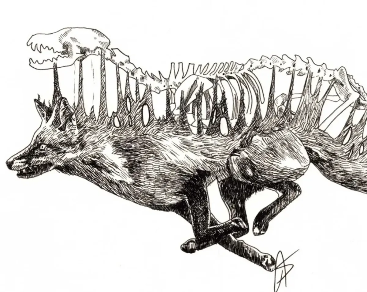 foxskeletonink drawingsurrealhybrid creaturemonochromaticanimal artRealismBold / GraphicDark / DramaticStorytelling / NarrativeAnimals / WildlifeSurreal / ImaginativeSpiritual / Symbolic
