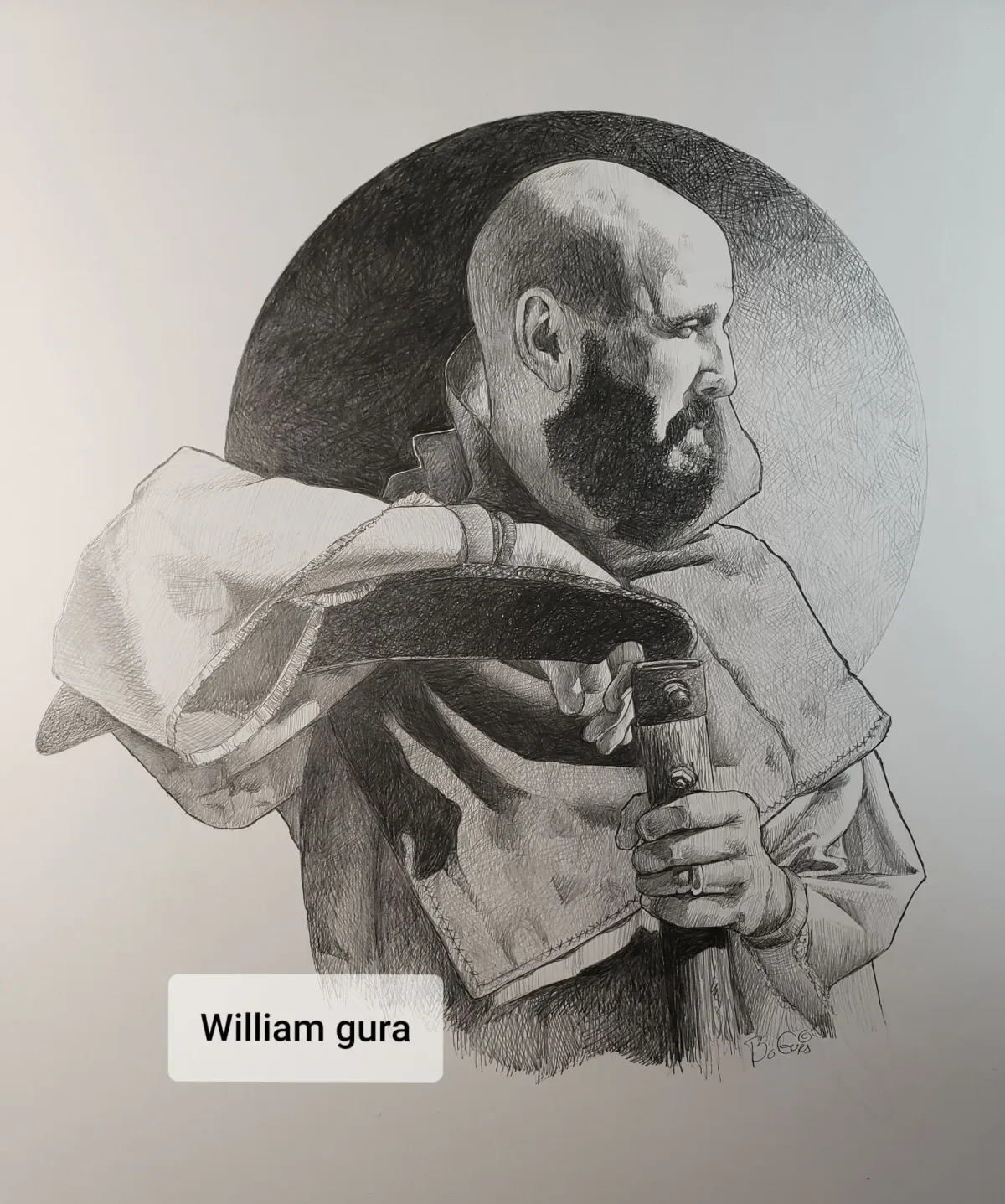 DrawingPortraitBearded manCross-hatchMonochromeCloakStaffRealismDark / DramaticStorytelling / NarrativePortrait / PeopleHistorical / Cultural