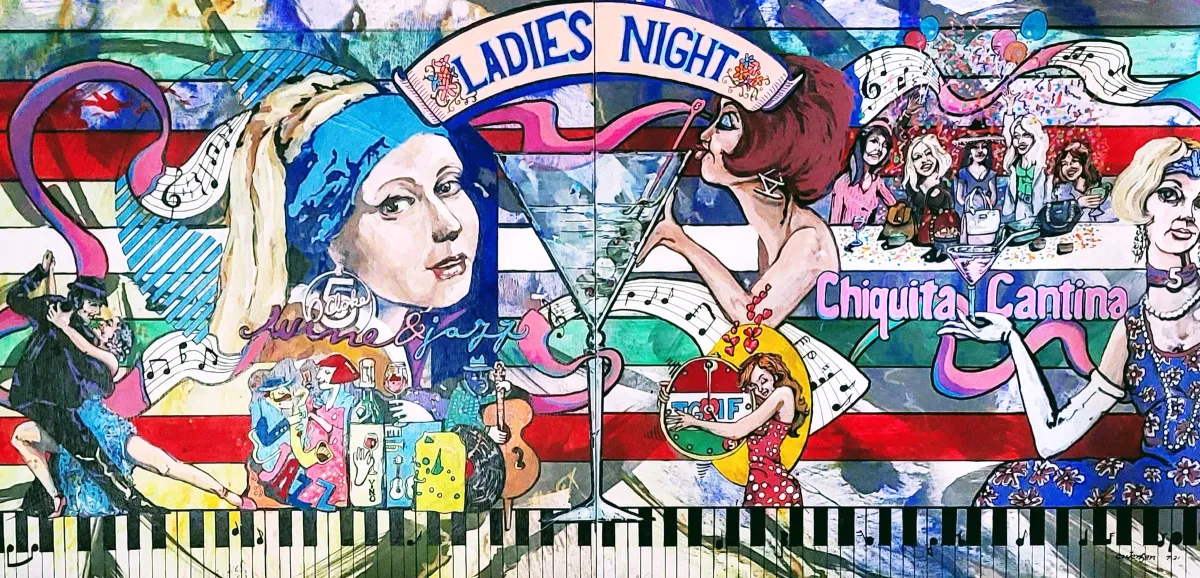 Ladies NightmuralpartymusiccollagevibrantcelebrationRealismContemporary / ModernBold / GraphicStorytelling / NarrativeExpressionism / EmotionalPortrait / PeopleHistorical / CulturalSpiritual / SymbolicHumor / Whimsy