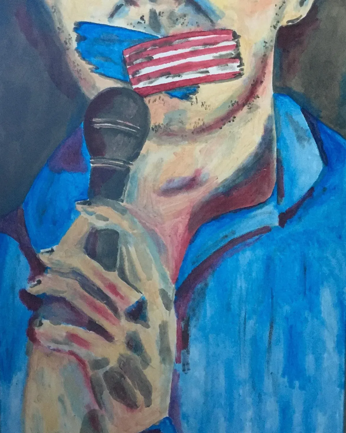 CensorshipFree SpeechPolitical ArtMicrophoneAmerican FlagExpressionismMuted VoiceExpressionism / EmotionalContemporary / ModernBold / GraphicDark / DramaticStorytelling / NarrativeStatement / ActivismPatriotic / Military / FreedomPortrait / PeopleConflict / Sacrifice
