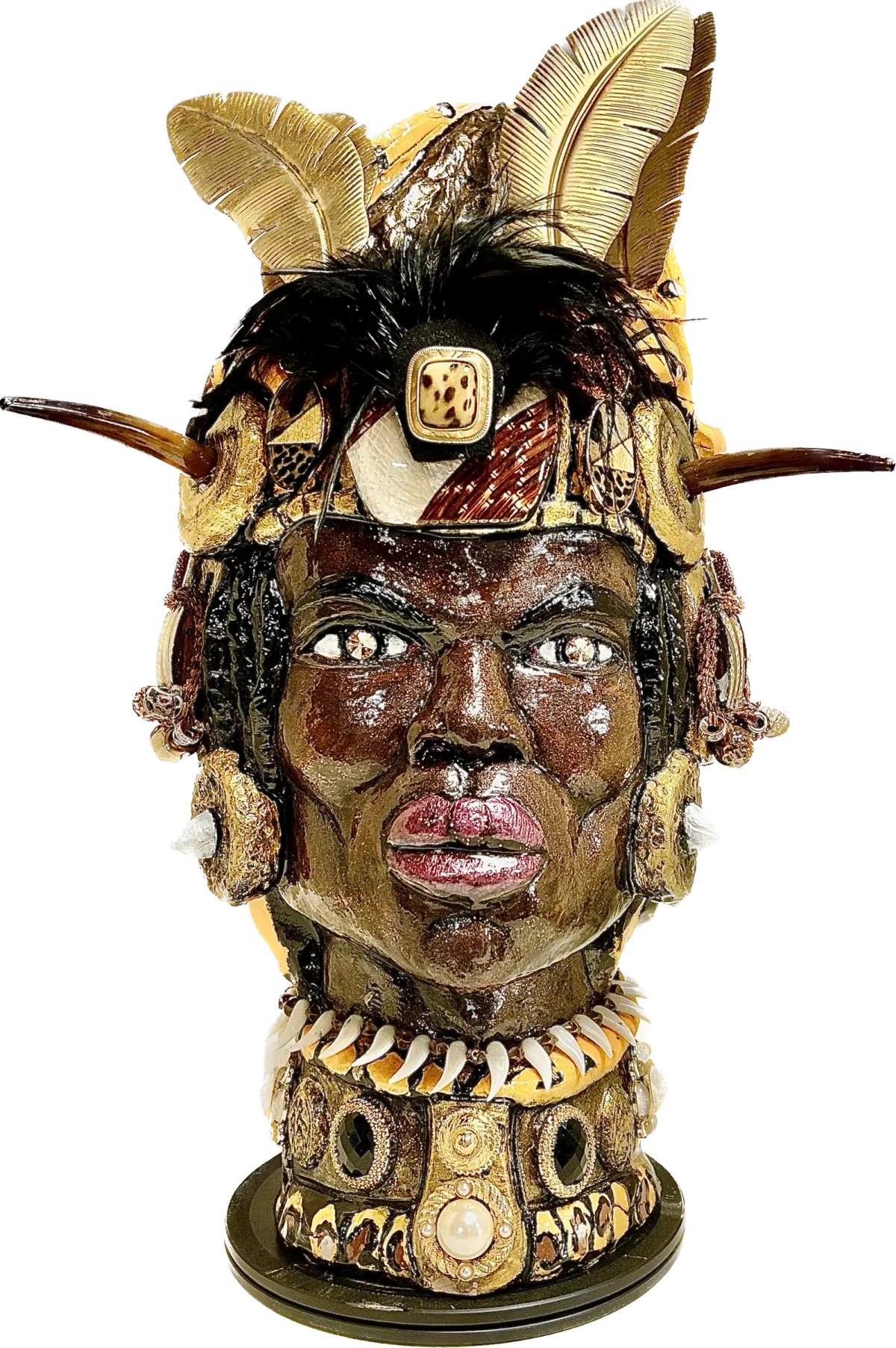 sculpturebusttribal artgoldfeathersculturaladornmentRealismContemporary / ModernBold / GraphicStorytelling / NarrativePortrait / PeopleHistorical / CulturalSpiritual / Symbolic
