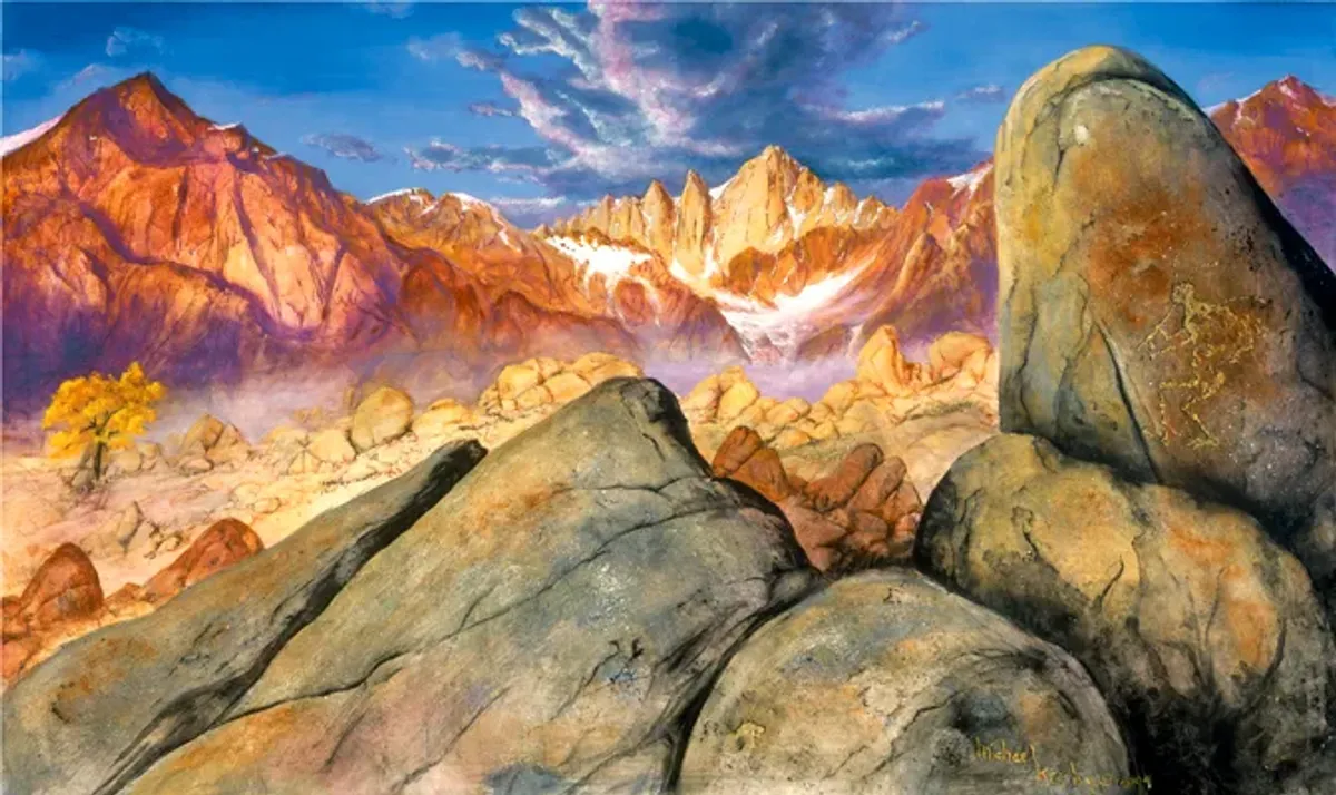 mountainlandscaperockspetroglyphnatureskydesertRealismStorytelling / NarrativeLandscape / NatureHistorical / CulturalSpiritual / Symbolic