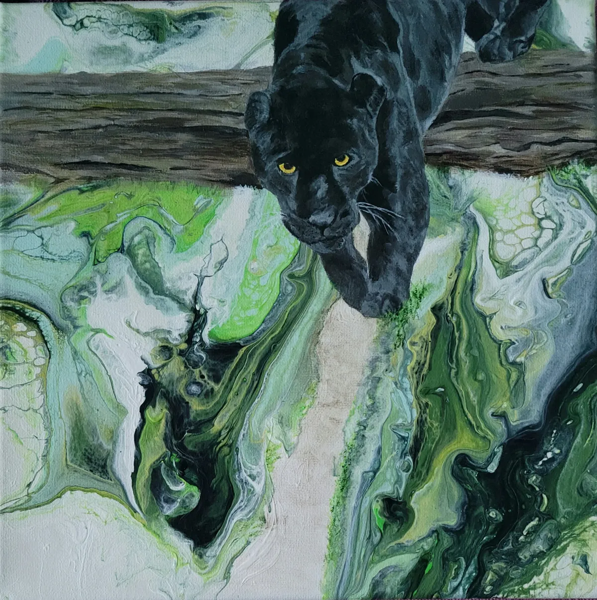 black pantherfluid artgreenwildlifebig catnatureabstractRealismContemporary / ModernBold / GraphicDark / DramaticLandscape / NatureAnimals / WildlifeAbstract / Conceptual