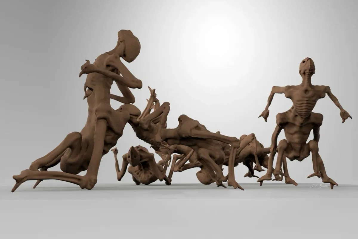 grotesquehumanoidtransformationsculpturedigital artsurrealskeletalRealismDark / DramaticStorytelling / NarrativeContemporary / ModernAbstract / ConceptualSurreal / ImaginativeConflict / Sacrifice